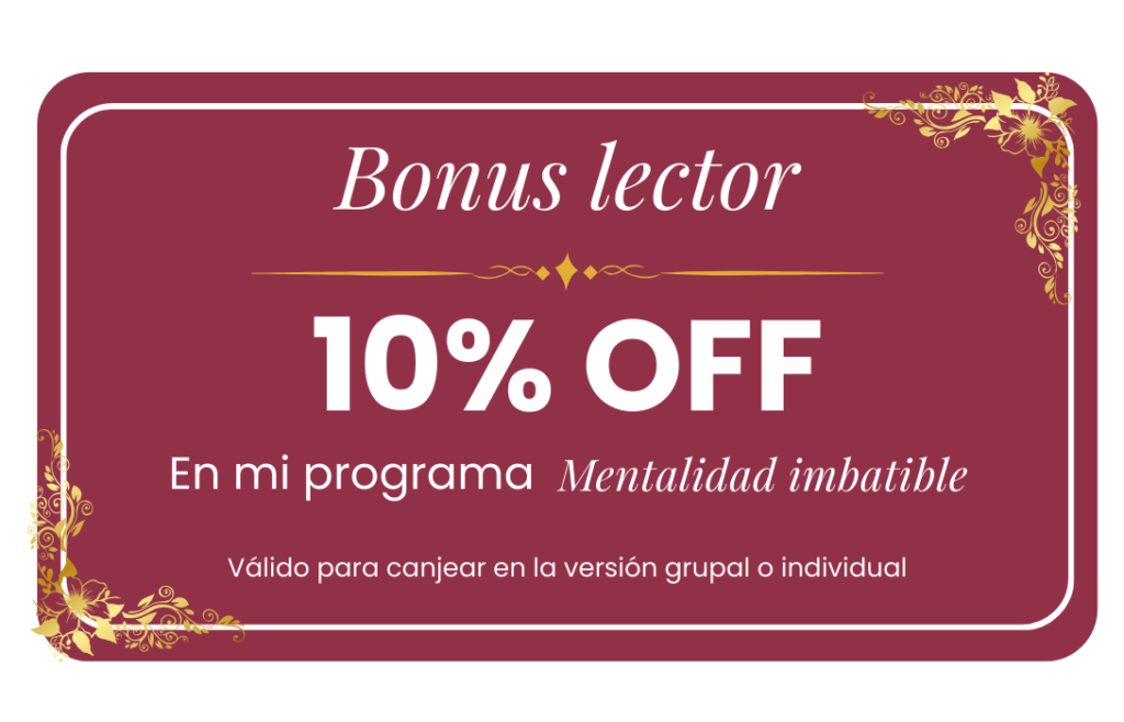 10% DE DESCUENTO EN MI PROGRAMA “Mentalidad Imbatible” para canjear en la versión grupal o individual.